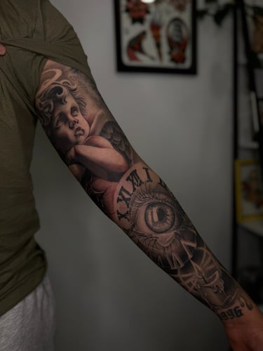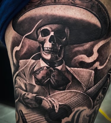 @art_by_melk es un tatuador bien rifado de Tijuana, especializado en el estilo Black and Grey. Se avienta piezas con un chingo de detalle, sombras bien trabajadas y un realismo que está perro. Si andas buscando algo chilo, él es el bueno.