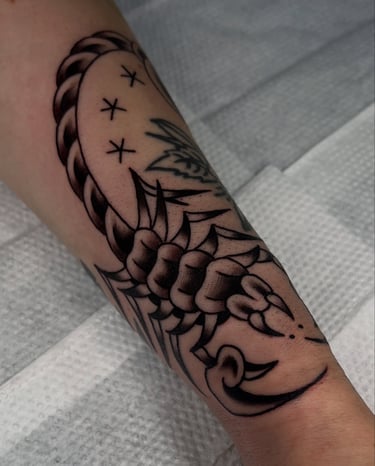 @lil_fer95 es un tatuador que se rifa con el tradicional americano. Sus diseños traen ese estilo clásico, con líneas gruesas, colores sólidos y un flow bien firme. Si andas buscando un tatuaje que aguante el tiempo y se vea con todo, él es tu gallo.
